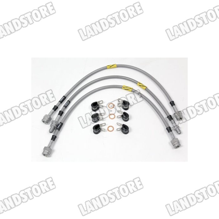 Przewody hamulcowe w oplocie metalowym Defender 90/110/130 od 2004 kpl. na auto (50mm dłuższe) bez ABS