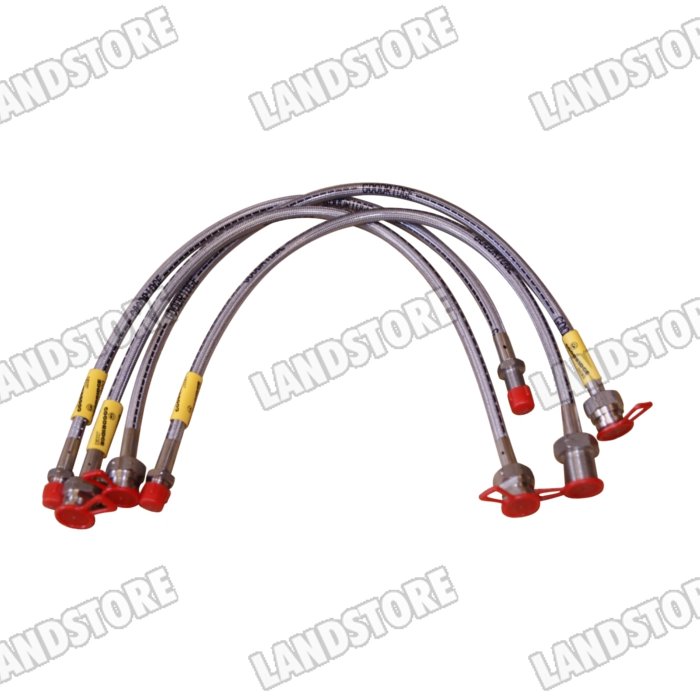 Przewody hamulcowe w oplocie metalowym Defender 90/110/130 od 2004 kpl. na auto (50mm dłuższe) z ABS Terrafirma