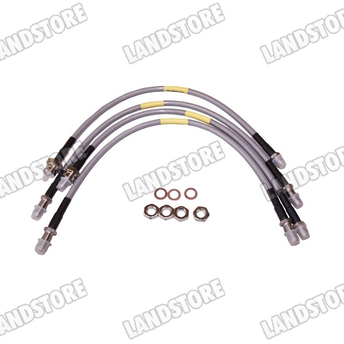 Przewody hamulcowe w oplocie metalowym Defender 90/110/130 od 99 do 2004 kpl. na auto (50mm dłuższe) z ABS Terrafirma